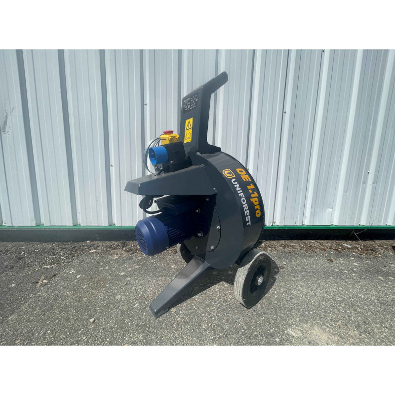 L’Express Disk 1100 METAL AGRICOLA est un combiné à bois professionnel avec un passage de 48 cm, un fendeur puissant de 25 T, et une lame à rotation hydraulique, commandée par joystick.
