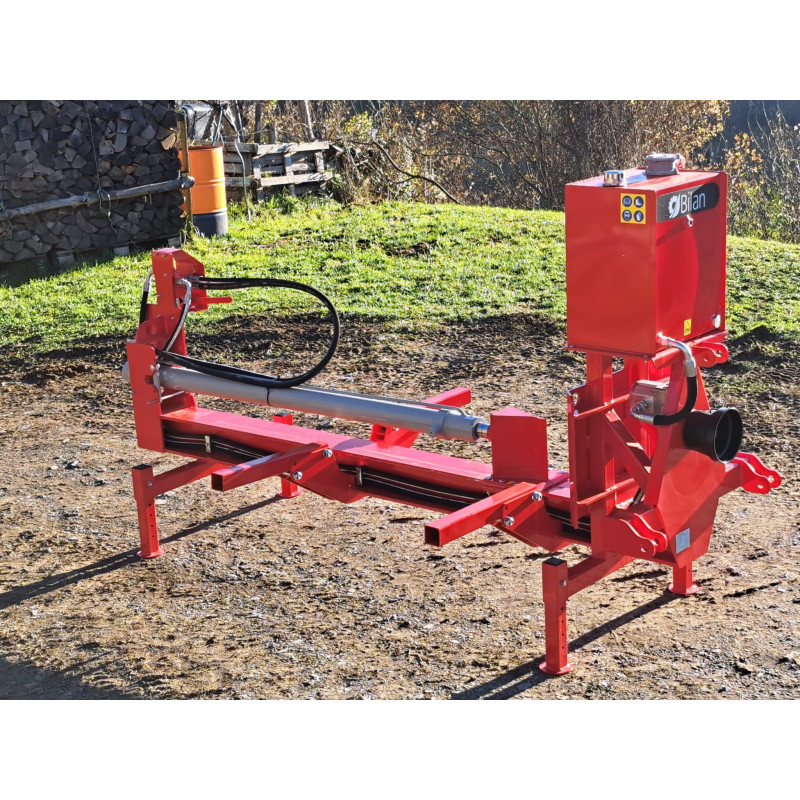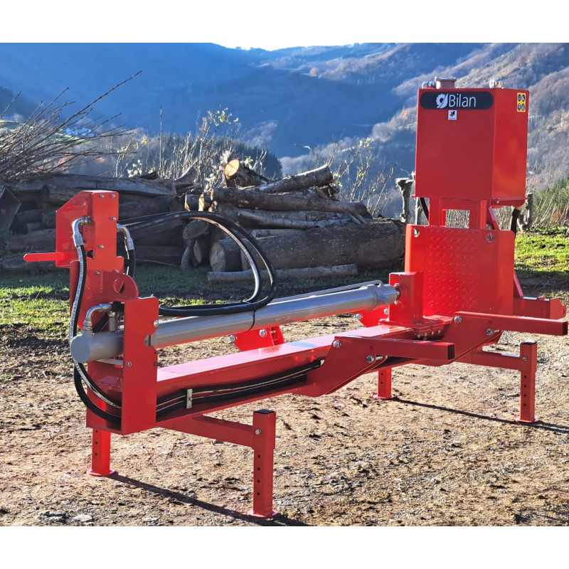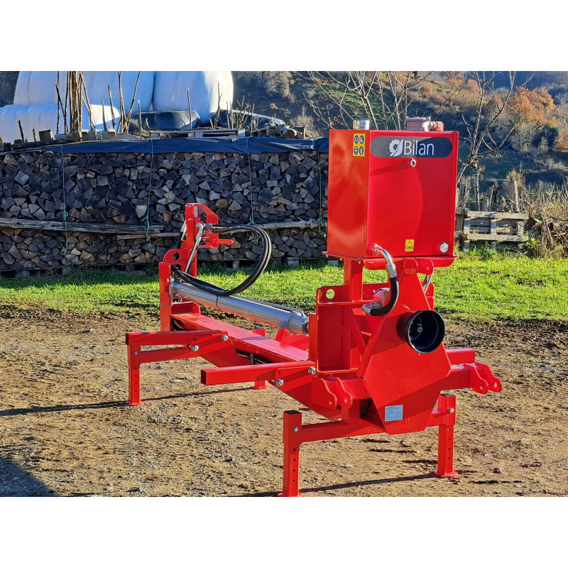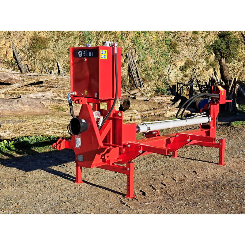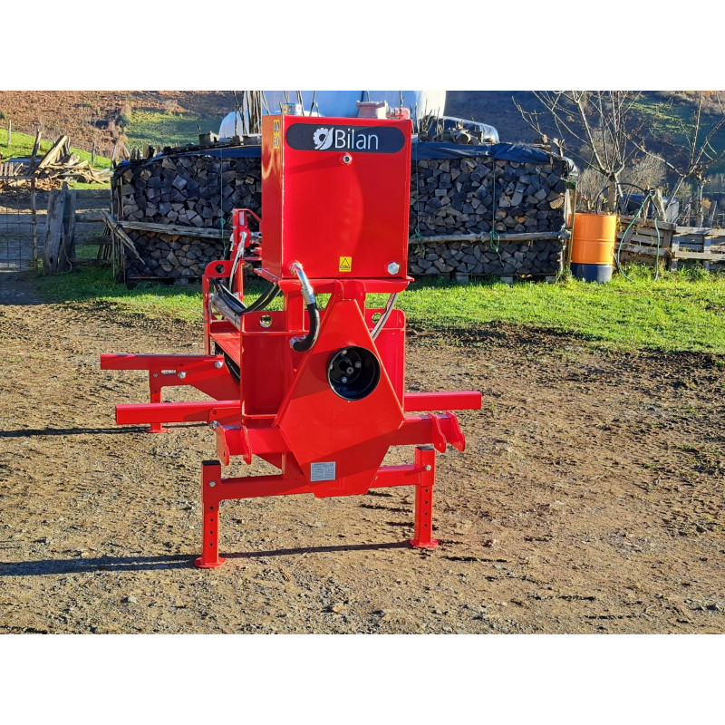 L’appointeuse de piquets BILAN est un modèle hydraulique direct alimenté par prise de force, offrant une puissance de 14 T pour des piquets jusqu’à 28 cm de diamètre et une longueur de coupe de 60 cm.