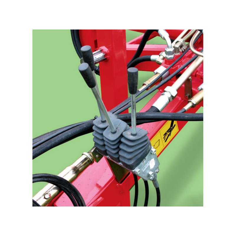 Andaineur triple à 15 rabatteurs commandé depuis le poste de conduite du tracteur avec une commande à distance reliée à une centrale électronique. 4 possibilités de travail :