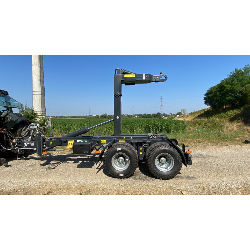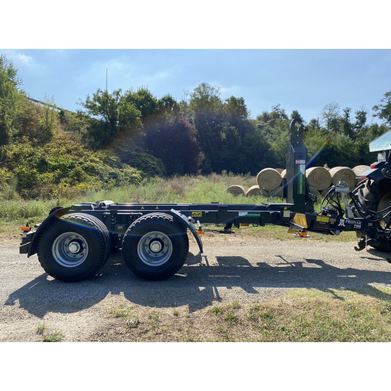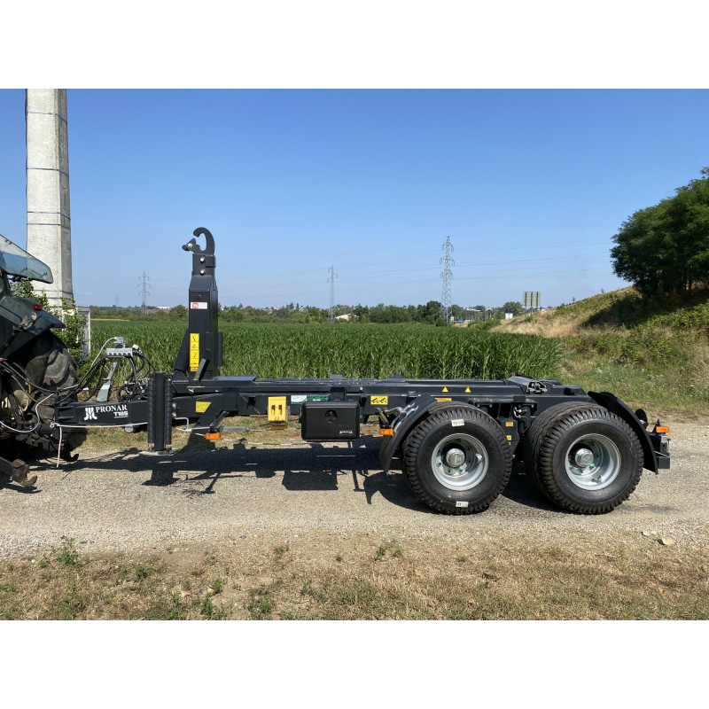 La remorque PRONAR T185 avec attelage à crochet est conçue pour manipuler des conteneurs agricoles, de chantier et des bennes destinées aux travaux municipaux ainsi que des plateformes de transport.