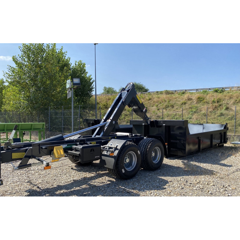 La remorque PRONAR T285 avec attelage à crochet est conçue pour manipuler des bennes agricoles, de construction et municipales ainsi que des plateformes de transport. Un confort de travail élevé est assuré par le mécanisme de chargement du conteneur, équipé d’un blocage hydraulique de suspension, utile pendant le chargement et le déchargement de la benne.